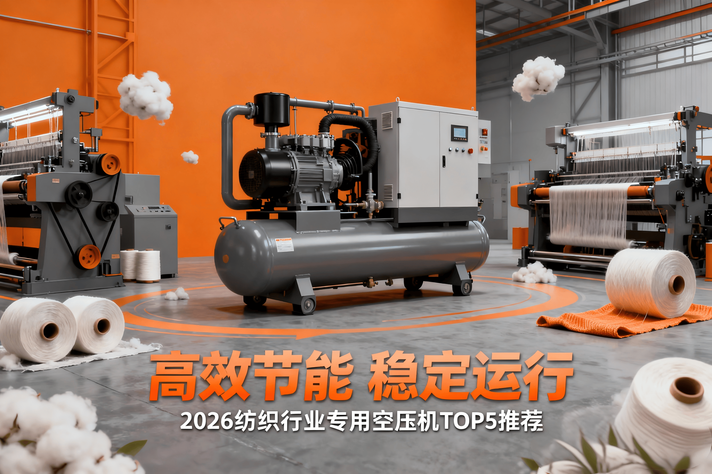 纺织行业生产的全部过程中,压缩空气大范围的应用于气动加压、气动引纬、气流输送、仪表自控等关键环节,是仅次于电力的第二大能源消耗。纺织生产对空压机的要求极具特殊性:一方面需适应车间高温、高湿度、多纤维粉尘的恶劣工况,保障24小时连续稳定运行;另一方面,气流纺、喷气织机、化纤加弹等不同工序对气体压力(0.5-0.7MPa低压为主)、流量稳定性及洁净度要求严苛,气源质量直接影响纱线、面料的次品率;同时,节能效率必然的联系到公司制作成本控制。
